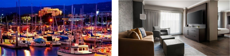 Our participants will stay in spacious Junior Suites that have been thoughtfully appointed with modern amenities, plush furnishings, and a soothing color palette that mirrors the coastal surroundings. In suite amenities include King size Bed, Sofa, Chair, Desk, Alarm clock (Sony), Safe, Hair Dryer, Iron and ironing board and flat-screen TVs with Netflix access, in-room Wi-Fi access and a Mini-Fridge. For dining, Fin + Field Restaurant and Bar serves California fare for breakfast, lunch and dinner.